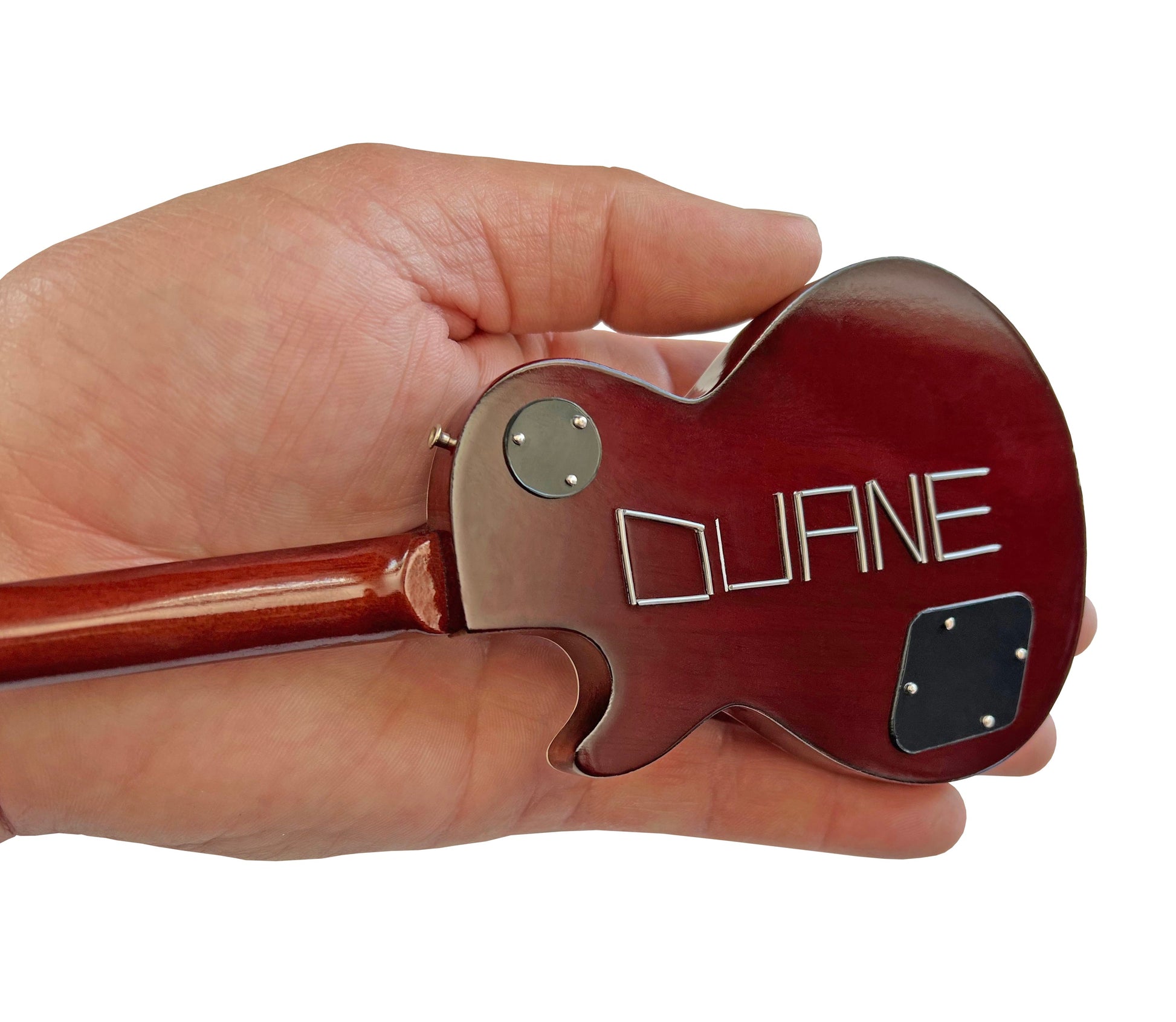 OFFICIALLY LICENSED Duane Allman Gibson Les Paul Tobacco Burst "DUANE" Back Mini Guitar Model