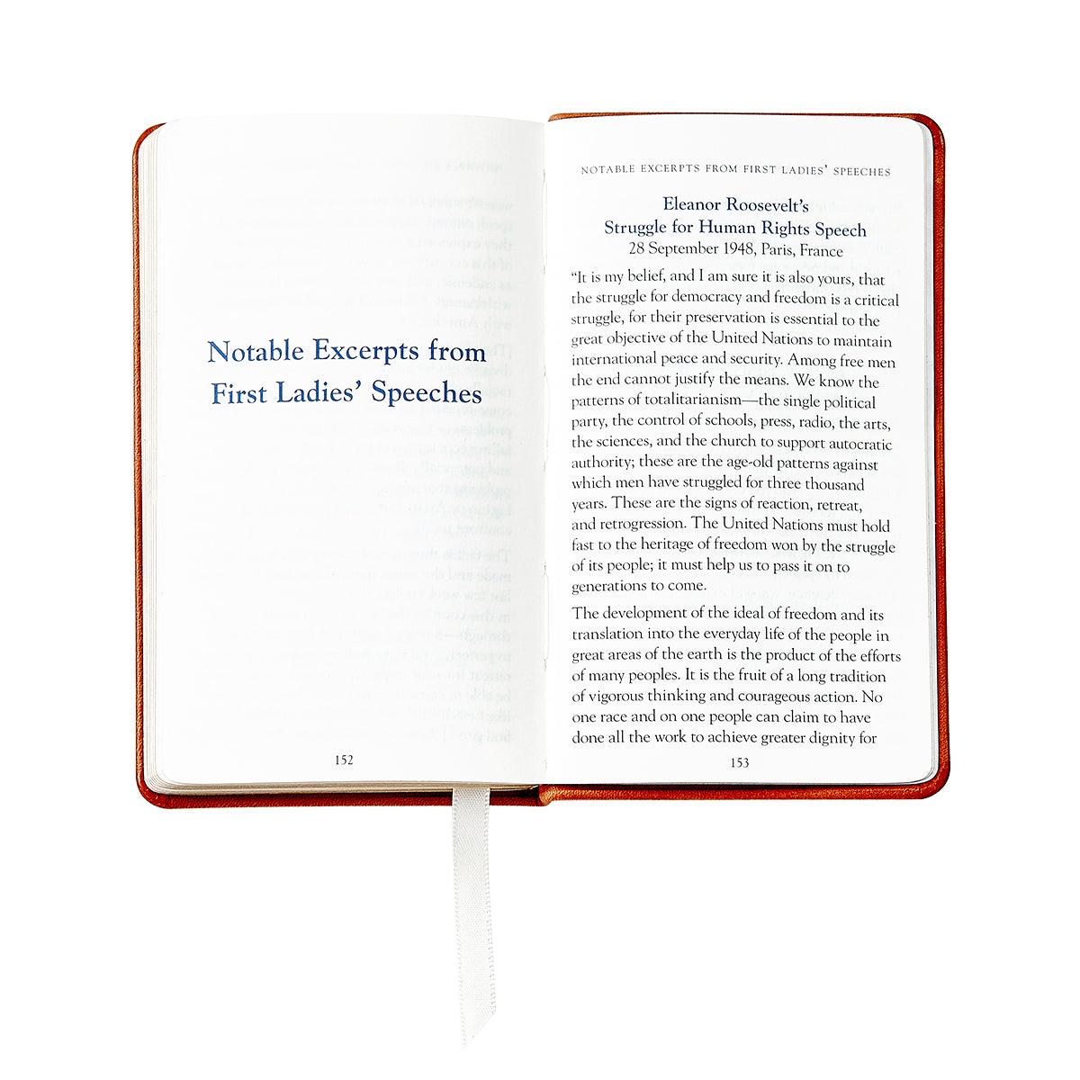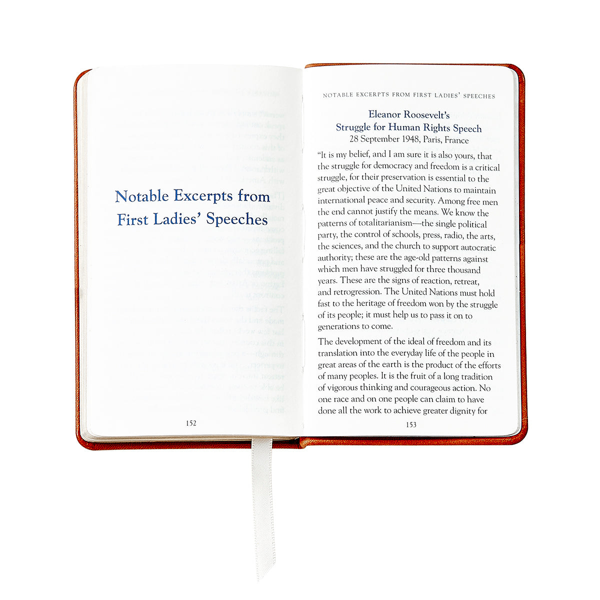 Our nation's history fits neatly in the palm of your hand. This palm sized leather bound book contains the complete United States Constitution, the Bill of Rights, and every constitutional amendment to the present day, as well as speeches from incredible First Ladies. Also included is an impressive array of documents, revealing the ideas, aspirations and differing views of the founding fathers. These documents include The Declaration of Independence, The Virginia Bill of Rights, Massachusetts Bill of Rights, Articles of Confederation, and Virginia Statute of Religious Freedom. Makes a wonderful gift.
